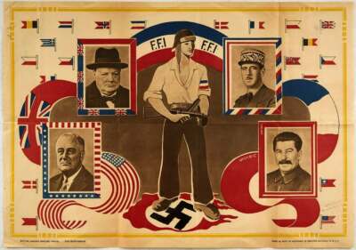 Original WWII French Resistance FFI Poster Churchill, Roosevelt De Gaulle Stalin