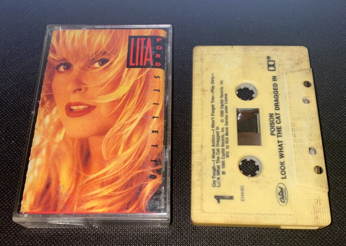 Lita Ford Stiletto Cassette Tape & Poison Look what the cat dragged in