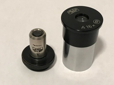 Zeiss microscope low power (8x) objective and high magnification (16x) eyepiece