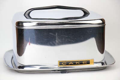 Mid Century Modern Lincoln Beautyware Cake Carrier Chrome Square 13 x 13" USA