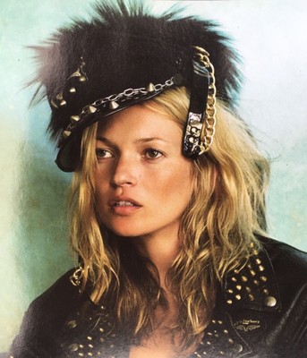 ケイト・モスが着用した Lewis Leathers サイクロンジャケットを着用した象徴的ロッカーキャップ
