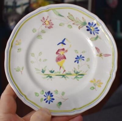 LOVELY OLDER MARK HND PTD FRENCH FAIENCE LONCHAMP MOUSTIERS BREAD PLATE - HAVE 3