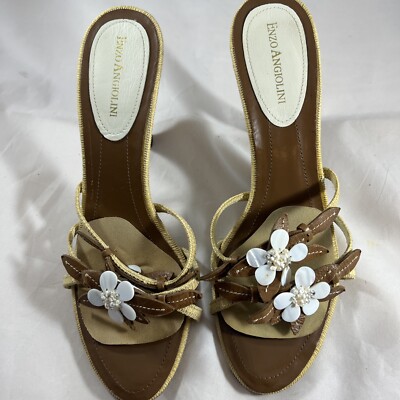 エンゾ・アンジョリーニ レディース レザー ストラップ サンダル ヒール 花モチーフ サイズ8.5 M