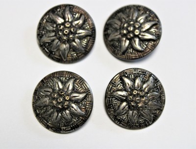 4 Vintage German Sunflower Button Signed GES V W Gesch Buttons 7/8"