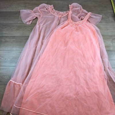 ビンテージ 60年代 インティメ ピーチピンク シアーチュール ナイトガウン ネグリジェ ペジャンセット M セクシー